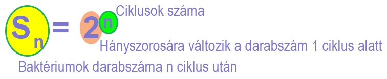 Ebben a rendszerben a logaritmust arra tudjuk felhasználni, hogy a darabszám (Sn) és az osztódás gyorsasága (2) ismeretében kiszámoljuk, hogy hány ciklus, azaz osztódás történt, míg a baktériumkolónia elérte a megadott darabszámot.