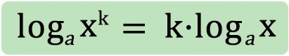 Az azonosság azt mondja ki, hogy egy hatvány logaritmusa egyenlő az alap ugyanezen alapú logaritmusának és a hatványkitevőnek a szorzatával. Természetesen a feltételek itt is érvényesek: a, x ∈ℝ+, k∈ℝ, a≠1. Azaz a, x pozitív valós számok, k valós szám, az a pedig nem lehet 1.