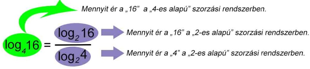 Ahhoz azonban, hogy ráérezzünk a logaritmus említett összefüggésének képletére, teljesen máshogy kell gondolnunk a logaritmusra. A logaritmus értelmezhető elvontan olyan rendszerként, mint a valuták, csak itt a különböző valutákat nem Forintnak vagy Dollárnak nevezzük, hanem a logaritmus alapja adja meg őket. A logaritmusra tehát gondolhatunk úgy is átvitt értelemben, hogy egy adott szám mennyit ér egy adott rendszerben. Ezt alapul véve megfogalmazható az alábbi: