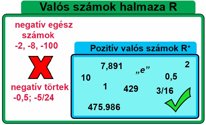 Lényegében tehát ez a feltétel az előző vonzata, hogy „a” számnak, azaz az alapnak pozitívnak kell lennie az ismertetett ok miatt.