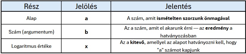 Míg az első összefüggés azt írja le, hogyha a 4-et a második hatványra emelem, akkor 16-ot kapok, addíg a második állítás csupán más szemszögből közelíti meg a dolgot, és azt fejezi ki, hogy hányadik hatványra kell emelnem a 4-et, hogy 16-ot kapjak.